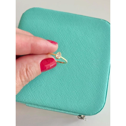Anel folheado em ouro 18K, com pedra Gota Zircônia e acabamento texturizado. Sofisticação e brilho para qualquer ocasião.