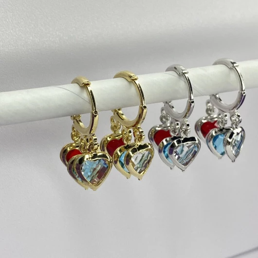 Cada coração representa um sentimento especial, e as pedras preciosas escolhidas para cada um deles acrescentam um toque de cor e brilho ao brinco. O rubi simboliza paixão e amor intenso, o aquamarine representa tranquilidade e serenidade, enquanto o cristal traz um brilho luminoso e uma aura de pureza.