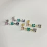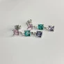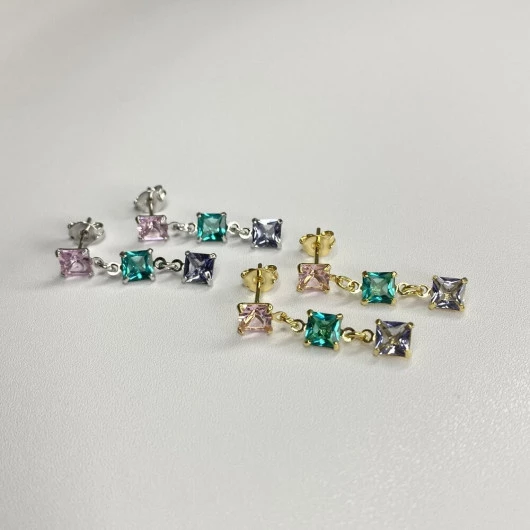 Os três quadrados pendurados adicionam movimento e dinamismo ao brinco, tornando-o uma peça de destaque em qualquer ocasião. A combinação das pedras preciosas cria um efeito de cores vibrantes e alegres, trazendo vida e estilo ao seu visual.