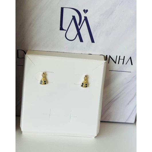 Brinco Nossa Senhora com Manto Safira – Tchuco, Folheado em Ouro 18K ou Ródio Branco