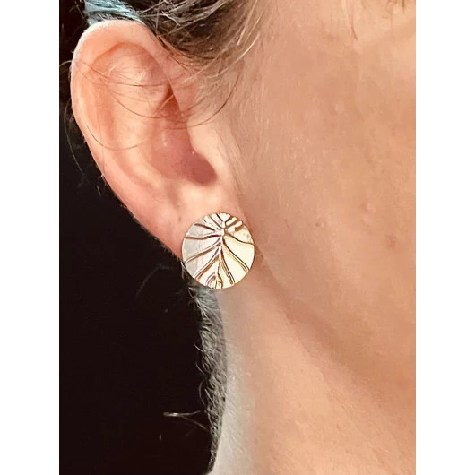 Brinco redondo orgânico com design martelado médio, folheado em ródio branco. Uma peça sofisticada e moderna, perfeita para adicionar um toque de elegância e estilo ao seu look.