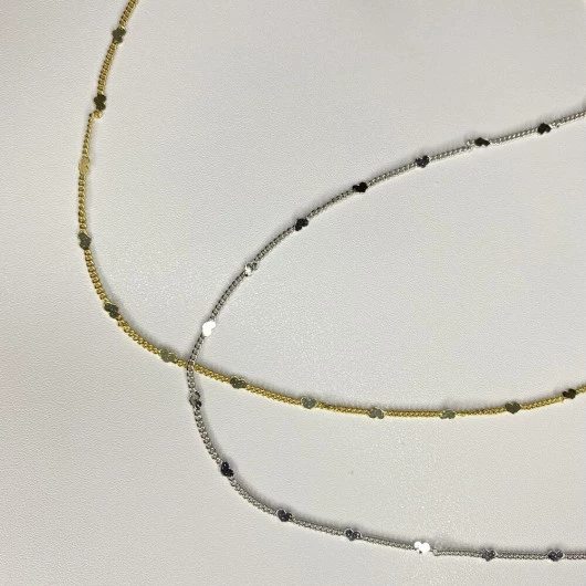 Choker com corações lisos e espaçados, design delicado e moderno, folheado em Ródio Branco. Uma peça minimalista e sofisticada, perfeita para complementar seu look com elegância."